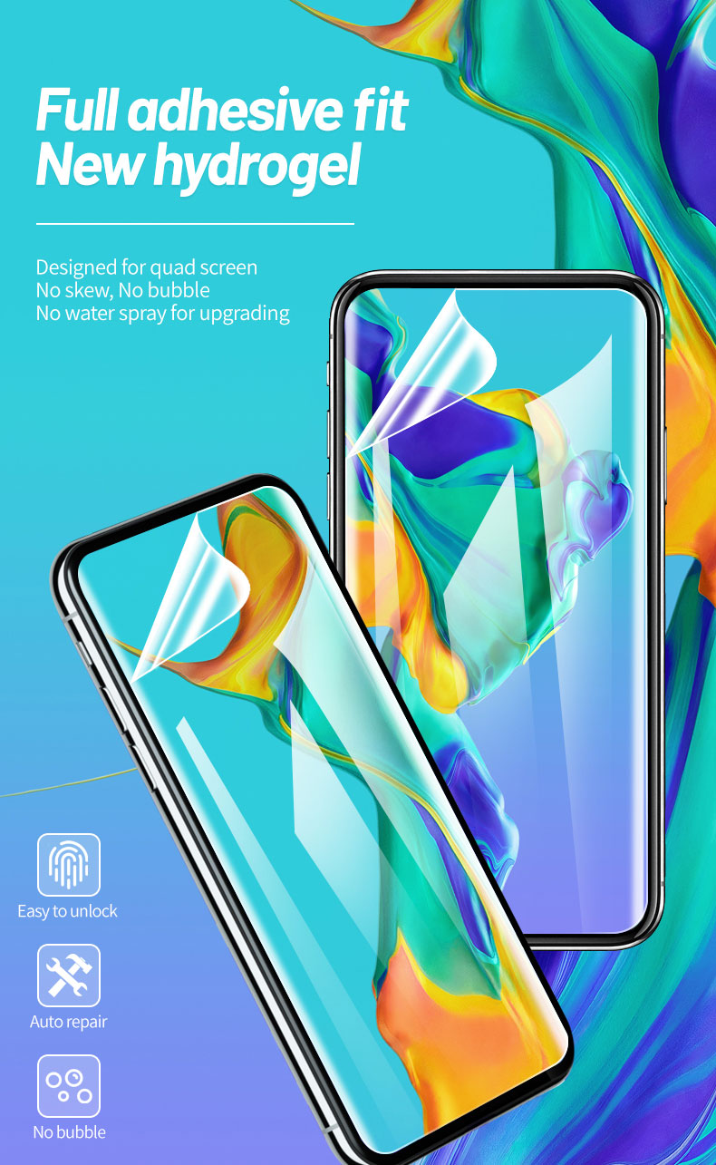 HD/matte/anti blue light TPU Hydrogel Protector Film is new soft material screen protector film, after laminate, allow device screen get a soft smooth protector. Full coverage, ultra thin, Built-in oleophobic and anti-fingerprint coating protects your screen from fingerprints and oil stains and is easy to clean.